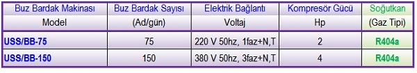 Ussan buz bardak makinası, tam otomatik bir buz bardak üreten buz makinasıdır. Suyu kendisi alır. Buzdan bardakları oluşturur ve otomatik olarak dışarı verir. Günde 24 saat sürekli çalışabilir. Temelde iki ayrı kapasitesi vardır. İlk model günde 75 adet buz bardak üretir. diğer model ise 150 adet buz bardak üretir. Buz bardak buz makinası komple inox paslanmaz sac ve şase dizaynına sahip olup monoblok tek gövde bir makinadır. Buz bardak buz makinasının kullanım alanları : barlar, otel ve restoranlardır. Buz bardaklar tek kullanımlık olup, erimeye geçer ve suya dönüşür. Çevre kirliliği yoktur. Buz bardak makinasından çıkan buz bardaklar, kullanıcı tarafından naylon poşetlere koyulup hemen derin dondurucuya sevk edilmelidir. Buz bardaklar şeffaf kristal buz görünümündedir. Mat beyaz değildir.