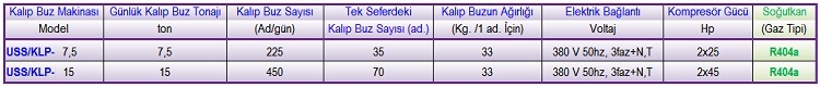 Ussan, tam otomatik ve yeni dizayn  kalıp buz makinasını, 7,5 ton/günde kapasitede ve bu kapasitenin katları olarak modüler artar şekilde imal etmektedir. Günlük kalıp buz miktarı 7,5 ton,15 ton ,21 ton olarak değişir.